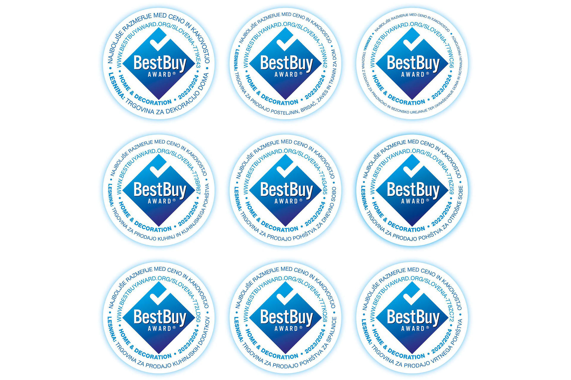 Veseli smo, da lahko delimo izjemno novico, da je Lesnina Slovenija v raziskavi, ki je potekala februarja 2023, prejela kar devet priznanj Best Buy Award. Ta uspeh odraža zaupanje in zadovoljstvo naših strank, ki so nas prepoznale kot trgovino, ki nudi najboljše razmerje med ceno in kakovostjo na slovenskem trgu v različnih kategorijah.